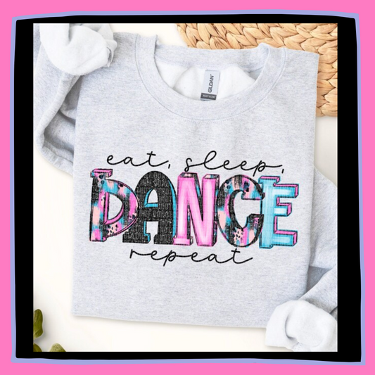 Eat Sleep Dance Repeat Pink Floral- T-Shirt, Tank Top or Sweatshirt